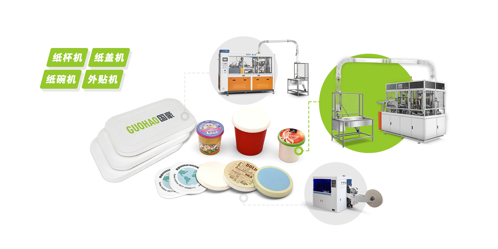 浙江國豪機械(原清華機械)有限公司是一家專業生產紙杯機、紙碗機、外貼機、瓦楞外貼機、紙餐盒機、紙碗外套機、漢堡盒機,薯條盒機,糊盒機,紙碟機、 模切機、印刷機、沖切機等各類紙容器整套成型設備的現代化企業。